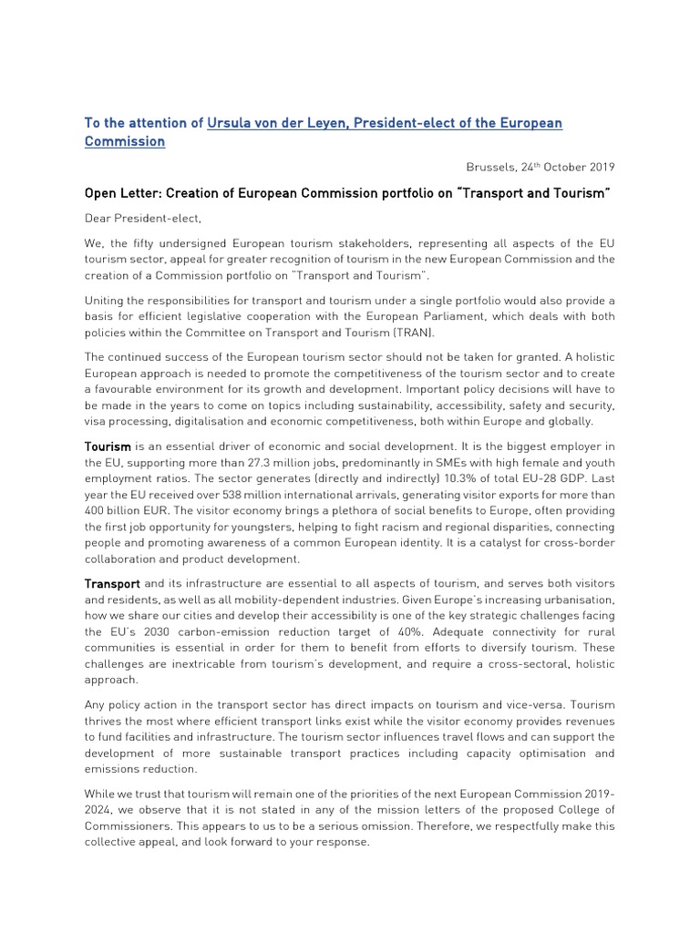 Open Letter Creation Of European Commission Portfolio On Transport And Tourism Tourism European Union Faroe Islands Tourism From India