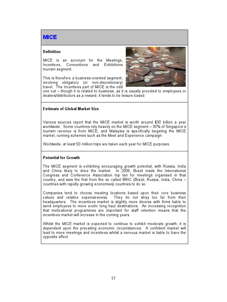 Canadian tourism college reviewsrole and responsibility of united nations world tourism organisation. Recently there has been an industry trend towards using the term meetings industry to avoid confusion from the acronym. Mice is considered as group tourism because all the type of events of mice usually attract group of people travelling together to attend those events. List page number 2.