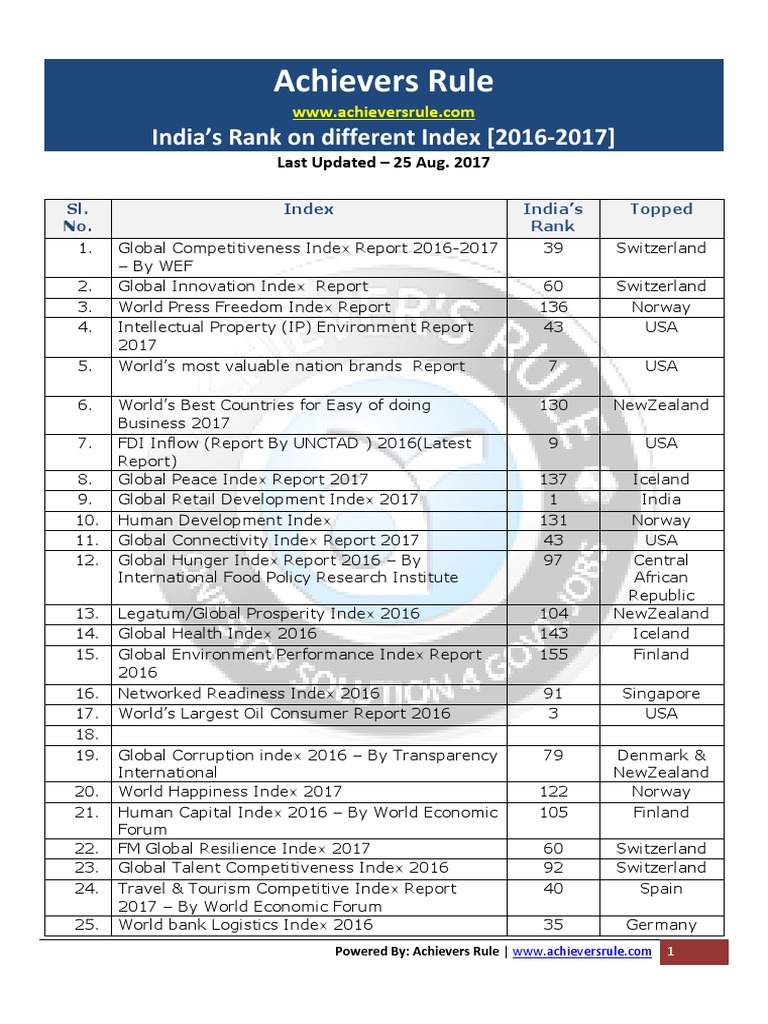 India S Rank On Different Index Last Updated 25 Aug 2017 World Economic Forum The United States Dallas Travel And Tourism Jordan Websiteworld Tourism Awards Kenya